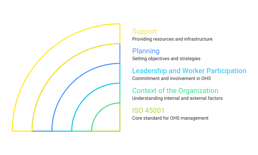 ISO 45001 is structured using the High-Level Structure (HLS), a common framework shared by other major ISO standards such as ISO 9001 and ISO 14001. The unified structure enables companies to integrate multiple management systems (MIS), resulting in a more efficient and consistent approach to business.